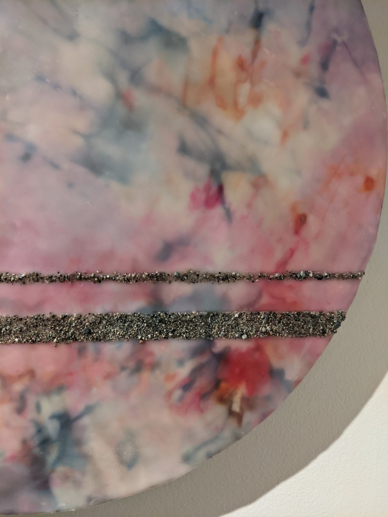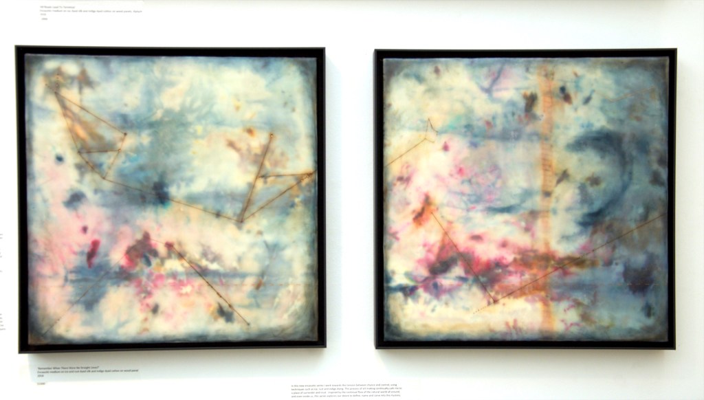 By using techniques such as encaustic (beeswax and damar resin) as well as ice dye and eco dye on silk, I explore the tension between chance and control. This process of art making continually calls me to a place of surrender, trust and ultimately wonder, as I work with and harness the incidental. It is an intuitive process. By art making with natural materials, I am reminded of the mystery and flow of the world around us, as well as our attempts to make sense of, map out and contain it.