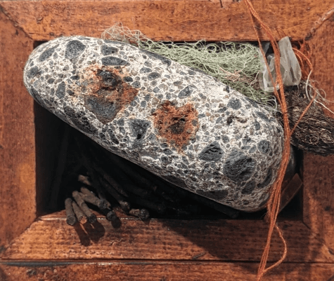 “The earth is all that lasts” a line from a 1974 Nancy Wood poem, kept coming to me while I created this piece. The earth is a storyteller. Her recordings of the past can be found in the layers of rocks, trees and dirt. We humans have only been around for a blink of an eye when it comes to the lifespan of the earth and yet we have set so much change in motion in the last century. What story are we leaving behind? We are always reaching, climbing, building, searching for more, but where exactly are we trying to go? By prioritizing capitalism or the short term ‘more’, we humans hurt ourselves and our fellow plant and animal earthmates, but the earth itself, she will go on, as she always has, until one day approximately 7.5 billion years in the future when she is absorbed by the sun.