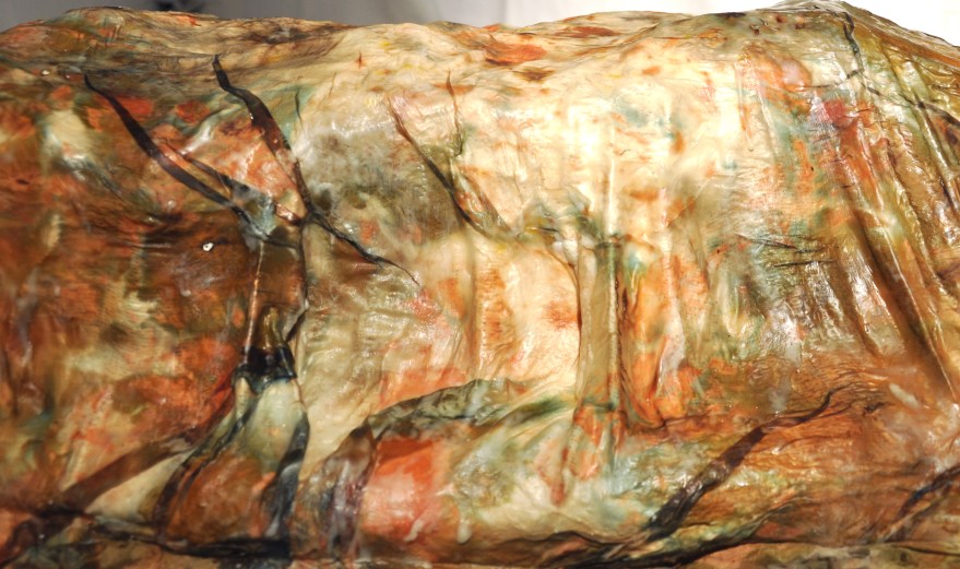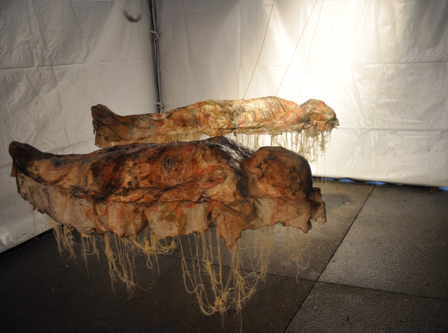 Change is not an isolated event for we are interconnected beings existing in a vast ecological web of relationships. While reading ‘To Love the Coming End’, I too found myself untangling the threads of my own seismic loss. Using the casts of both my body and that of my former partner, this piece became a personal reflection on my changing relational geography and a reminder of the life/death/life cycle apparent in all of nature. By working with natural materials such as wax, silk and eco dye, I was forced to surrender to the unknown and to harness the accidental. Furthermore, working with plaster on a larger scale became a somewhat hilarious, art-imitating-life scenario. I found myself grappling with multiple unexpected plaster disasters, which ultimately lead to hard earned artistic growth.